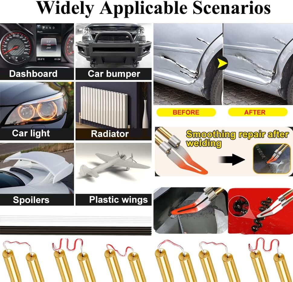 🧰【Wide Applications】: Plastic repair kits can repair 98% of plastic products on the market. —Tips: This product is an upgraded 150W welding gun. The instructions has not been updated due to product upgrade. If you receive an old version of the instructions, do not doubt, we ensure that the product itself is a 150W welding gun. It’s just that the instructions was not updated in a timely. Sorry for the inconvenience.