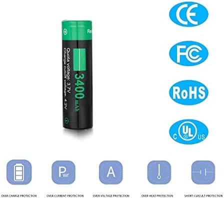 【Durable rechargeable】3400mAh 18650 Rechargeable battery large capacity,Which can be widely used for electronic devices, such as LED flashlights, emergency lights, portable devices, headlights, toys, remote controls, etc.Recharge up to 1050 cycles – longer battery life than alkaline batteries, No need to buy batteries frequently.