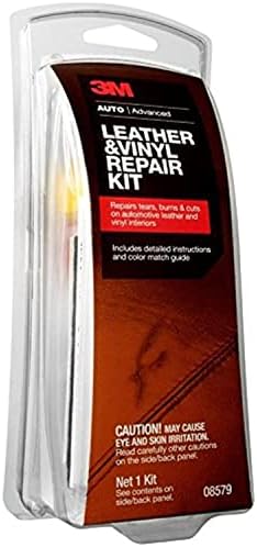 Kit repairs cuts, tears and burns in automotive leather and vinyl