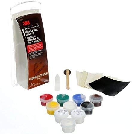 Includes 7 color mixable repair compounds, textured grain papers, mixing cups, vinyl adhesive, applicator tool, and heat transfer tool