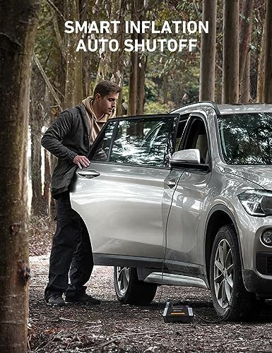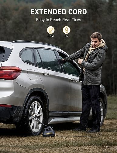 PRODUCT HIGHLIGHTS: One-click to change pressure units among PSI, kPa, BAR and KG/CM; Large white backlight LCD screen makes it easy to read even in the dark; Equipped with integrated LED flashlight with independent switch control for emergency use; 12V 120W 10ft (3.05 meters) long heavy-duty car cigarette lighter cord makes it convenient to use;NOT 110V AC plug. It needs a 10A or 15A converter to use in a wall plug.