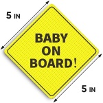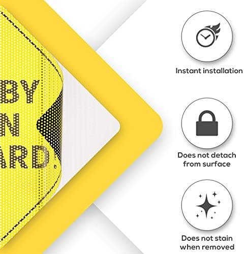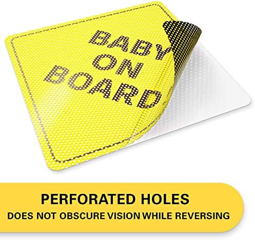 ⭐ SEE-THROUGH & HIGHLY VISIBLE: As Always Parents, SAFETY FIRST! Our conventional baby on board stickers are bright yellow making them highly visible but, better yet they are also SEE-THROUGH from the inside of the car making reversing and looking in your rear view mirror safe and easy, without obscuring your view. This is done by manufacturing small perforated holes onto the sticker while from the outside the yellow will become predominant against the car window once applied.