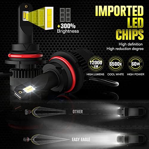 12000LM HIGH LUMENS: These 9004 LED headlight bulbs are made with superior LED chip sets (last over 30,000 hours). Its luminous flux reaches up to 6000LM per bulb (12000LM per pair), which produces similar 6500k xenon white light and brings 3 times more brightness compared with traditional halogen bulbs.