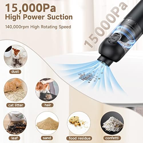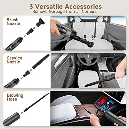 ✨【Two Powerful Mode】ELENAT for Tesla handheld vacuum cleaner adopts high-speed DC brushless motor, which supports switching to powerful mode. The suction power ranges from 8000Pa to 15000Pa. Tesla model 3 accessories help you easily remove dust, sand, paper scraps, hair, food residue .