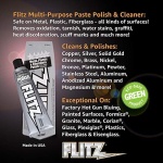 Maximum Safety: Non-abrasive, non-flammable. Flitz is even safe to use on food preparation surfaces. Safe enough to use in the kitchen or the bathroom, strong enough to use in the garage.