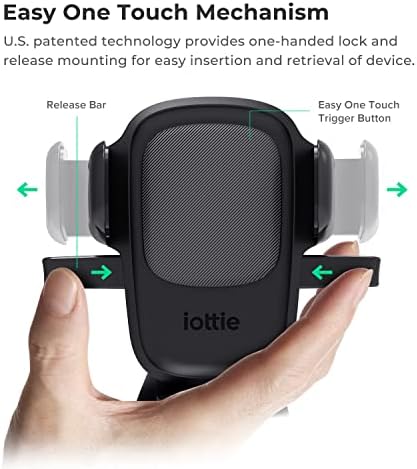 EASY ONE TOUCH MECHANISM: Press the locking side arms with a quick one-handed motion, and place your phone against the trigger button. The mount’s arms will close automatically, holding your device securely while you drive. Mount or remove your phone in seconds with the patented Easy One Touch Mechanism.