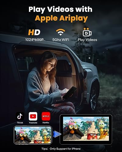 šćWireless Airplay Play Videos & 2.5D HD TouchscreenćYou need to connect your iPhone and Carplay to the same Wi-Fi network, select SmartScreen in screen mirroring in the iPhone control center, and play Youtube, TikTok, and other videos. This wireless carplay screen features a resolution of 1024*600 2.5D HD touch screen and supports to 1080P videos. Even outdoors or on trips, you can enjoy the high-definition large-screen video experience.š¤·āāļø(Tipsļ¼Doesnāt support Netflix)