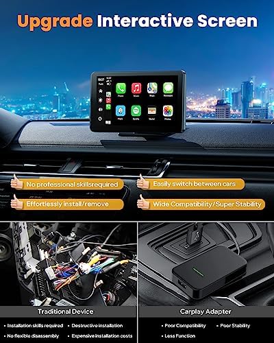 šćWide Compatible & Easy InstallationćLAMTTO apple car play display screen with the 360-degree rotatable suction cup mount and self-adhesive bracket secures your dashboard console or windshield and can be easily removed and stored. In addition, It is powered by a cigarette lighter with 12-36V voltage, Suitable for almost all kinds of cars, trucks, caravans, vans, trailers, campers, etc.