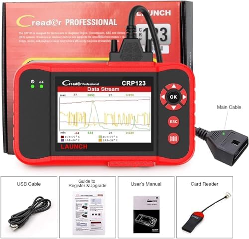 [Worthy to Buy]–Compared to other automotive scanners priced between 50-200 dollars, LAUNCH CRP123 has the multiple advantages.With full OBDII functions, it also serves as an ABS&SRS&transmission scanner and engine checker. It can be used to check if your car is ready to pass the annual test through the I/M readiness menu, saving money and ensuring safety.Furthermore, it has various features, such as real-time data stream shown up, built-in DTC library, data record, playback and printing etc.
