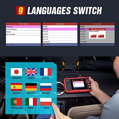 [Extensive Vehicle Coverage + 9 Languages]–The LAUNCH CRP123 reads data from ENGINE, TRANSMISSION, ABS and SRS systems from Asian, US and European manufacturers. Coverage includes Suzuki, Honda, Mitsubishi, Nissan, Toyota, Mazda, Hyundai, Kia, Subaru, Infiniti, Lexus, Acura, Isuzu, Ford, GM, Chrysler, Benz, BMW, VW, Opel, Volvo, Fiat, Land Rover, Seat, Skoda, Audi, Porsche, Saab, Jaguar and many others. Support 9 different languages.
