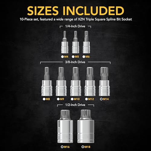 MUST HAVE – 10-Piece set XZN Triple Square Spline Bit Socket. Crafted and Designed to work on European automotive like: BMW, Mercedes, VW, Audi, Porsche, and most other European vehicles.