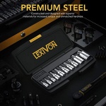DURABLE – Drop-forged, Heat-treated S2 alloy steel bits, Reduce wear-outs. Hardened treated Chrome Vanadium steel sockets, Increase turning power.
