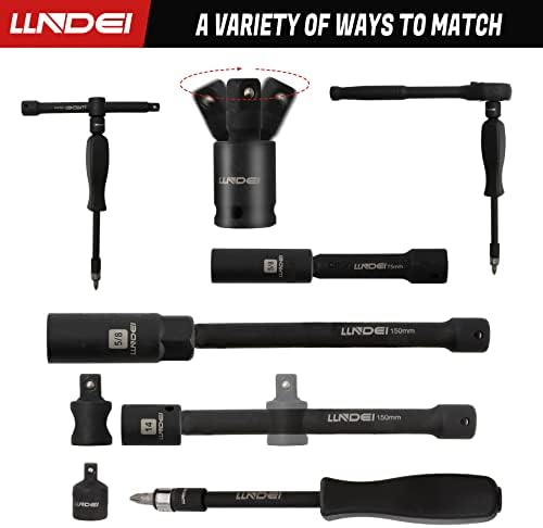 ✔METRIC & STANDARD SOCKET SET: LLNDEI 3/8-inch Impact socket set includes both metric and standard sizes and 1/4-inch bits and full complement of extensions and to fit any and all measurements you encounter on the job or home repair!
