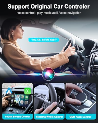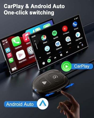 【Switch between CarPlay and Android Auto】With just one click, switch between Wireless CarPlay and Android Auto modes and enjoy a variety of features like navigation, music playback,Siri,phone calls,and voice control.supports original steering wheel controls, touch screen buttons,and knob controls for increased convenience.