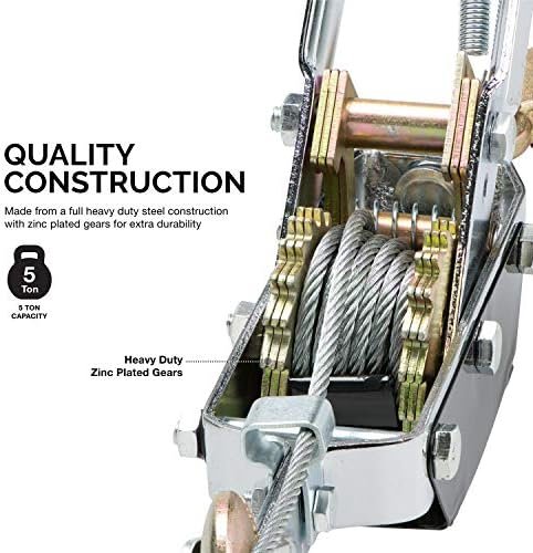 5 TON COME ALONG WINCH: Heavy-duty mini come along five ton come along hand winch cable puller delivers serious pulling power for construction, home, farms, ranch, fences, and automotive use. Max horizontal load capacity of 10,000 pounds.
