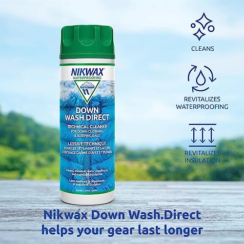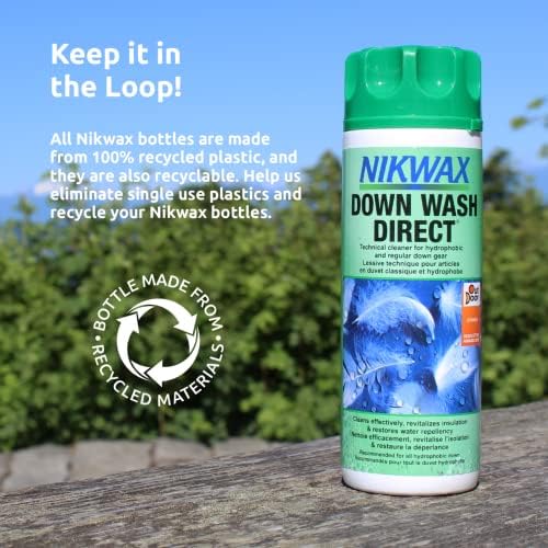 Safe for use on jackets, gear and bedding with down-fill, down blends, or water resistent down (such as Nikwax Hydrophobic Down)