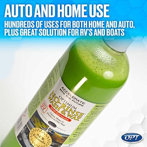 Sleek and Glossy Finish Every Time: Optimum Car Wash and Wax provides all of the benefits of Optimum No Rinse Wash and Shine, but is formulated with carnauba wax for unsurpassed gloss and protection. ONR No Rinse contains unique polymers that protect automotive paint and coatings. The new ONR formula improves encapsulation and creates a barrier between dirt particulates and the automotive finish – providing lasting gloss and a sleek finish.