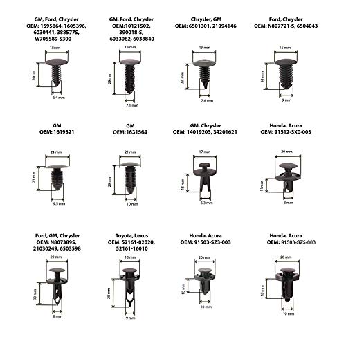 Packaging Includes 12 Different Size Retainers. Each Retainer Comes With 20 pieces. Great For Toyota, Honda, Acura, GM, Chrysler, And Ford.