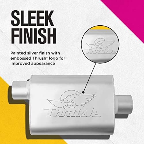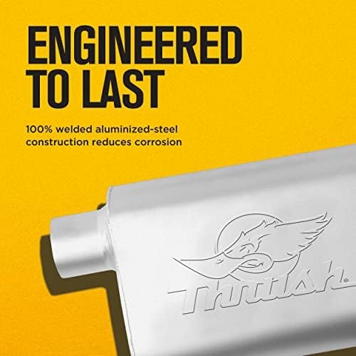 Featuring a two-chamber design for a deep, aggressive tone, a Thrush® Welded muffler will transform your exhaust system. Thrush Welded mufflers have 100% welded aluminized-steel construction for durability and painted silver for a sleek finish.
