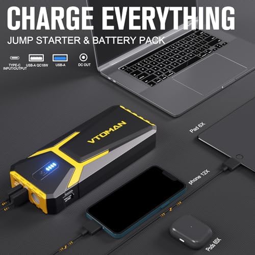 So Powerful, So Pro: VTOMAN presents the V10 Pro, our most powerful jump starter ever. Rated at a genuine 4500 amps, the V10 Pro jump starter battery pack can safely and efficiently jump start all 12V vehicles (including all gasoline and up to 10.0 liters diesel engines) in just 30 seconds. It’s universal compatible with cars, trucks, motorcycles, tractors, lawnmowers, SUVs, snowmobiles, boats, vans, RVs, and more.
