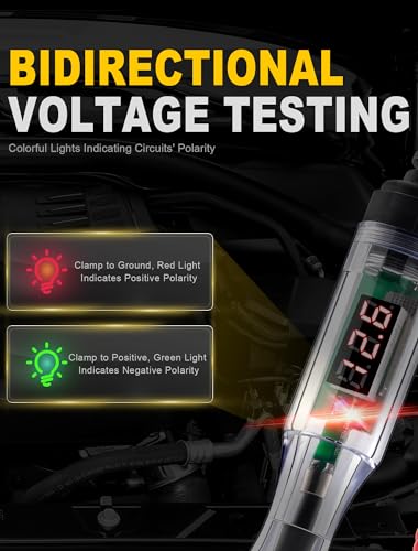 【Bidirectional indicating light】: There is a bidirectional light emitting diode on the circuit board for polarity indication, red light indicates positive polarity & green light indicates negative polarity. You can attach the alligator clamp either to negative or positive ground, while using the probe to touch the other side.