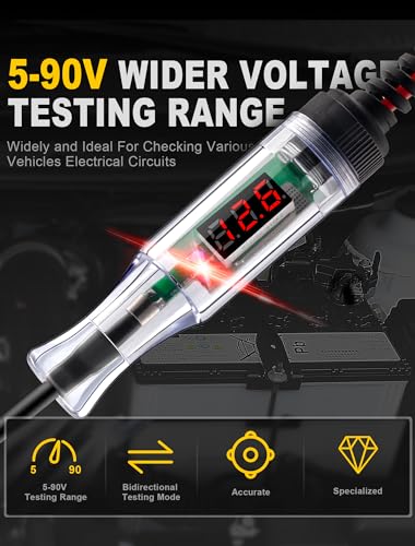 【Widely Use】: WINAMOO auto electric tester pen is ideal for checking various vehicles electrical circuits. Sharp long probe is used to pierce wires and reach into narrow areas, quickly check automotive headlights, taillights, turn signal circuits, faulty sockets, connections, fuses, broken wires and more, suitable for your daily use.