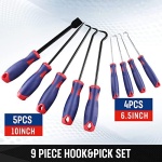 Unique Design:Designed with sharp tip, ideal for removing hoses, moldings, clips, clamps, seals, O-rings, cotter pins, gaskets and more too small to pick up with your fingers. Each hook and pick has an extended length that allows you a deeper reach into tight spaces.