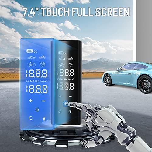 【7.4” TOUCH FULL SCREEN】Unique design that distinguishes most air pump screen on the market,smart touch technology,user friendly interface,7.4″ touch full screen design,easy to use in dark environments.The air pump comes with carrying bag,it easy to carry anywhere.